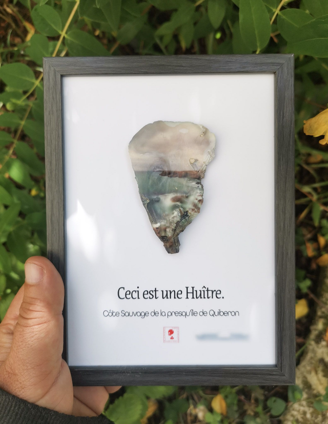 Tableau 20x30 cm , Procédé unique d'un mariage entre une huitre et une de mes photos. On voit la nacre à travers la photographie. Arnaud Sabot photographe du Morbihan, et de Vannes